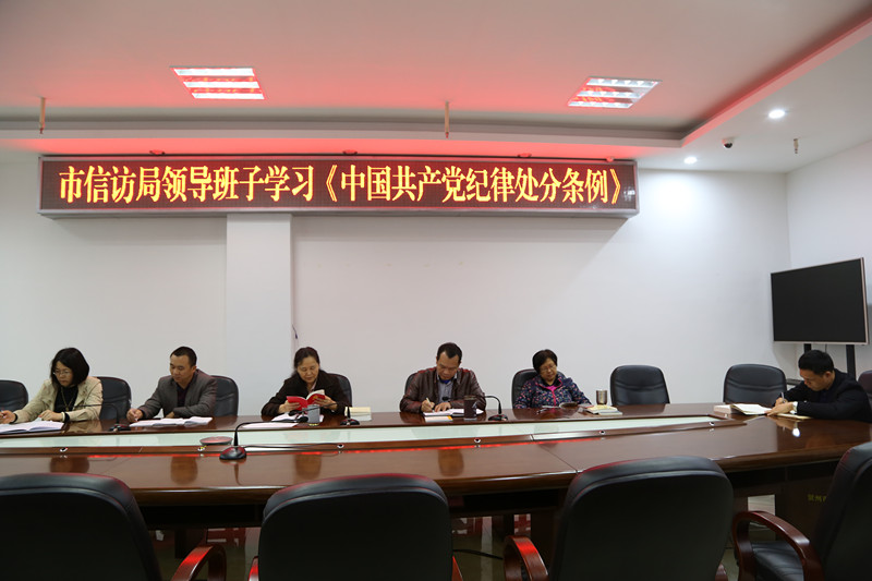 上图:贺州市信访局领导班子集中学习《中国共产党纪律处分条例》
