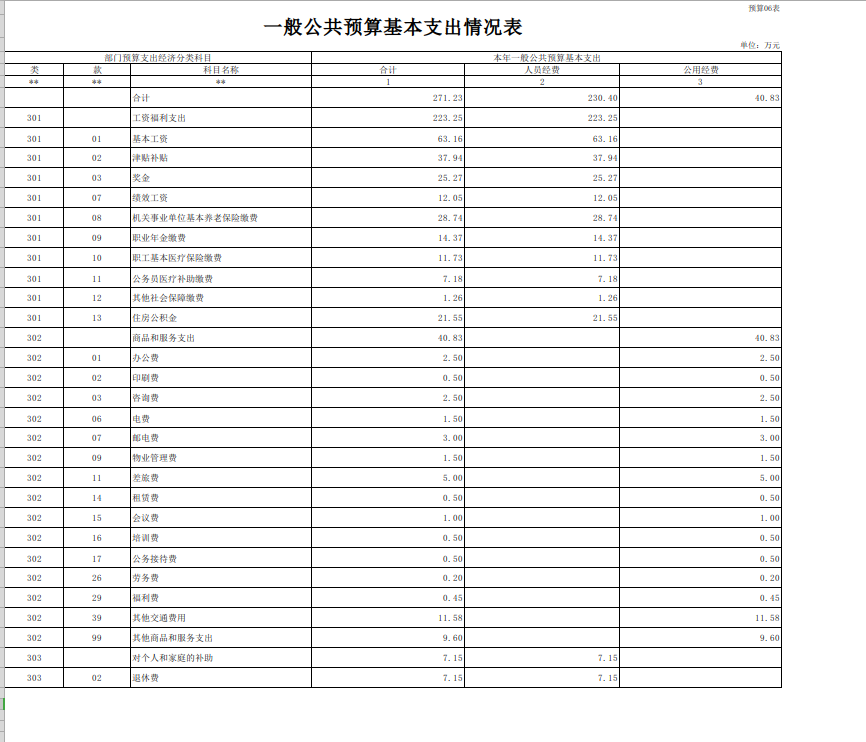 2022年一般公共预算基本支出271.23万元。其中: