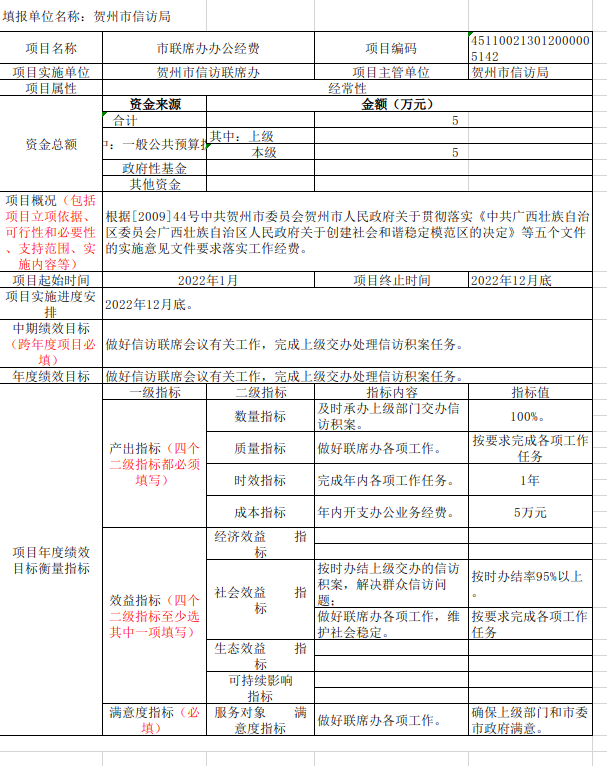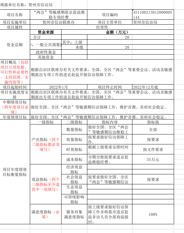 (五)项目支出:指用于信访保障工作的专项经费等。
