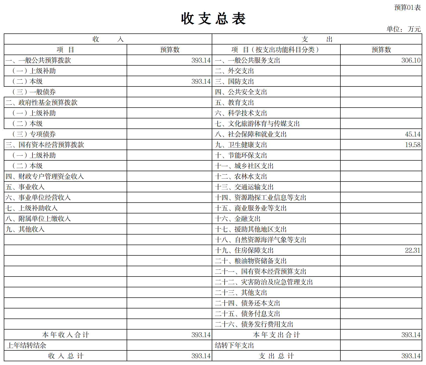 (一)部门收支总体情况表