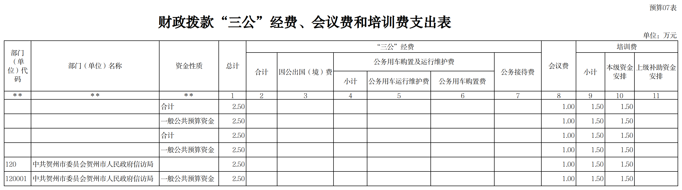 贺州市信访局2023年部门预算安排及“三公”经费预算信息公开