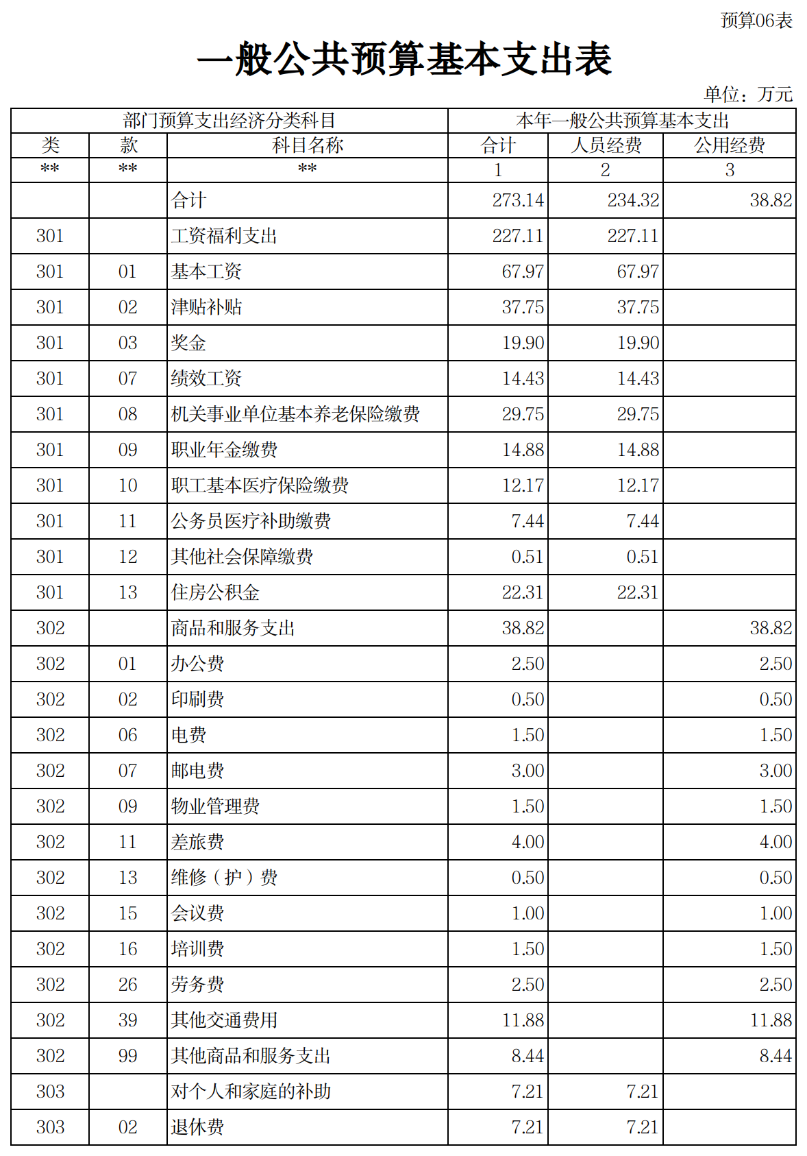 2023年一般公共预算基本支出273.14万元。其中:
