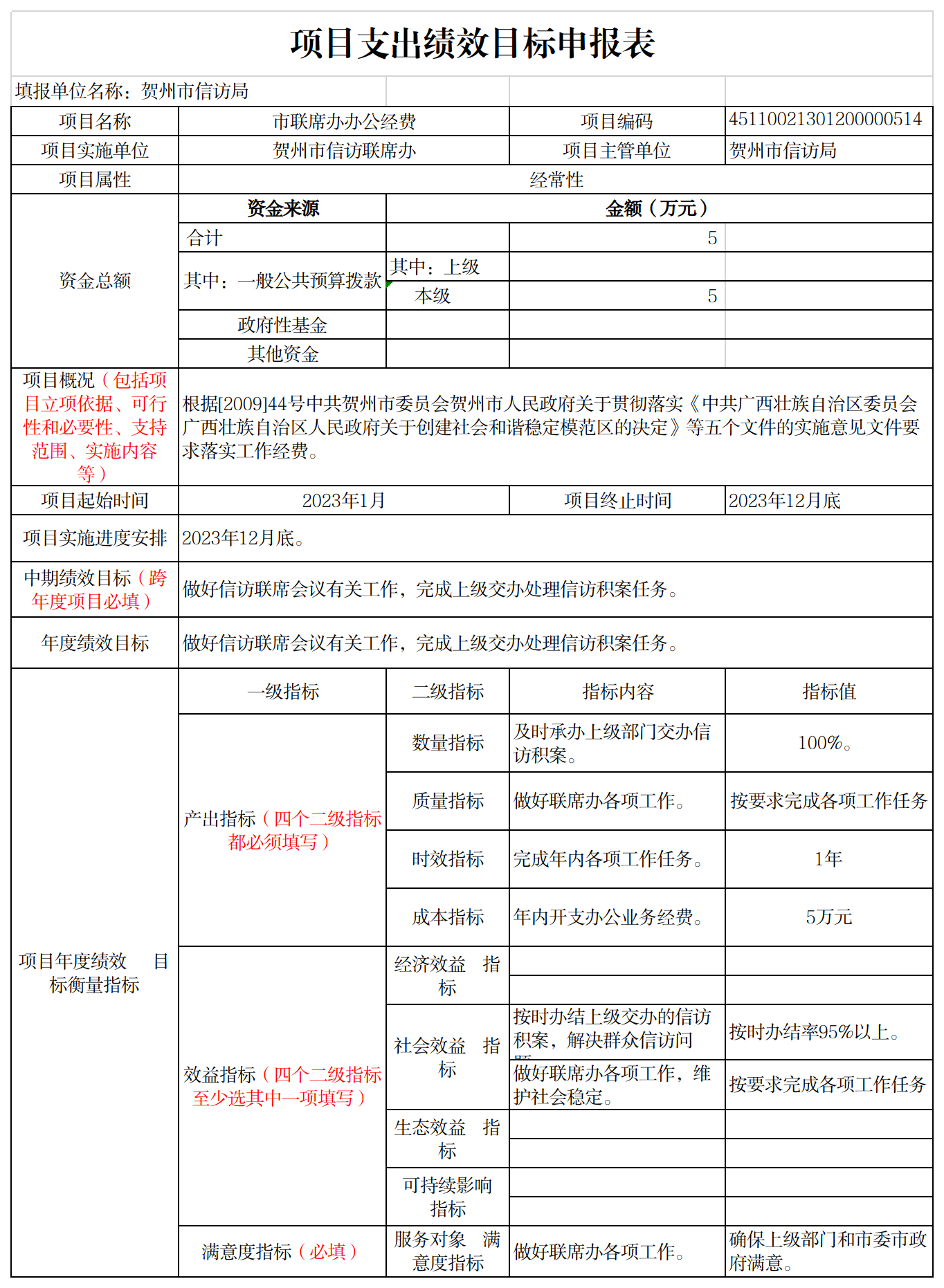 (五)项目支出:指用于信访保障工作的专项经费等。