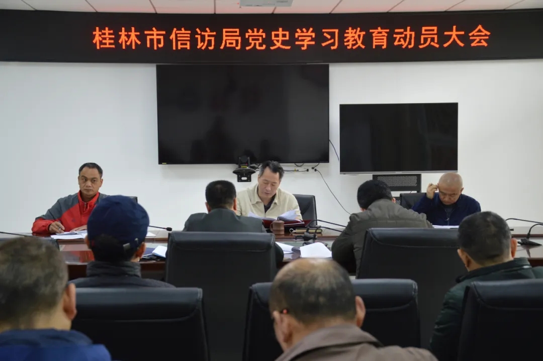 近日,桂林市信访局召开党史学习教育动员会,深入学习贯彻习近平总书记在党史学习教育动员大会上的重要讲话精神,对市信访局开展党史学习教育工作进行动员部署。市委副秘书长、市信访局局长裴军讲话。
